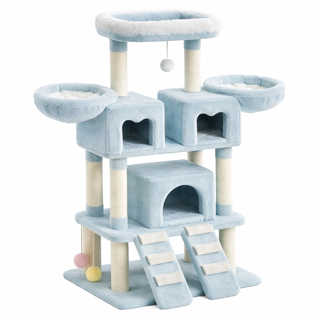 Árbol para gatos de madera y sisal con plataformas de felpa verde