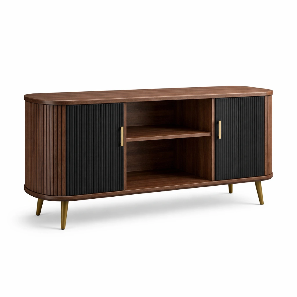Aparador de madera chapada con puertas de MDF y patas de metal 150x40x55 cm
