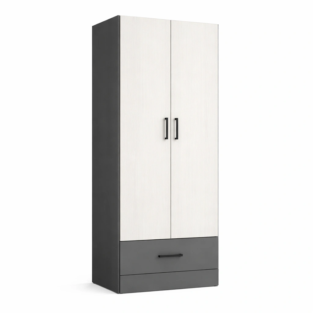 Armario de madera con puertas y cajón blanco y gris 180x80x50 cm