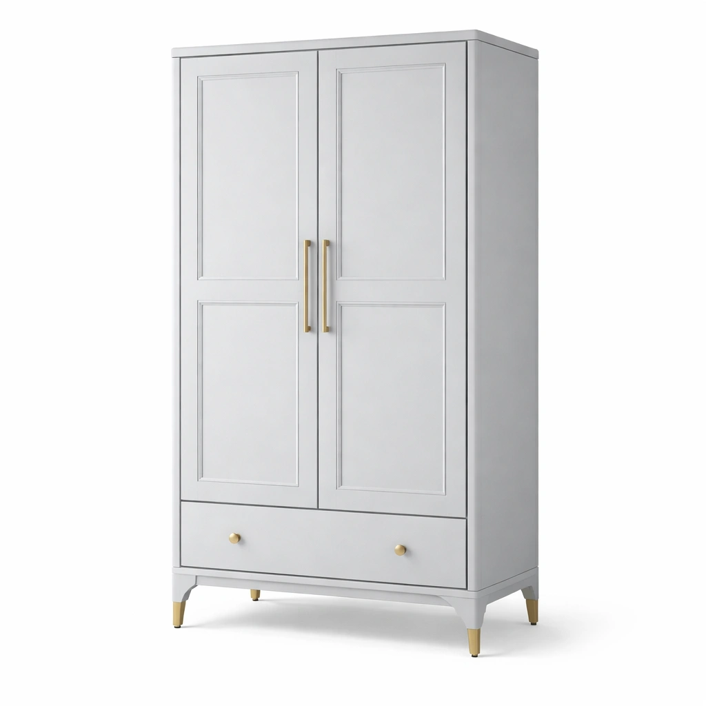 Puertas: Batientes, con configuración interna de 2 estantes y 1 barra para colgar.