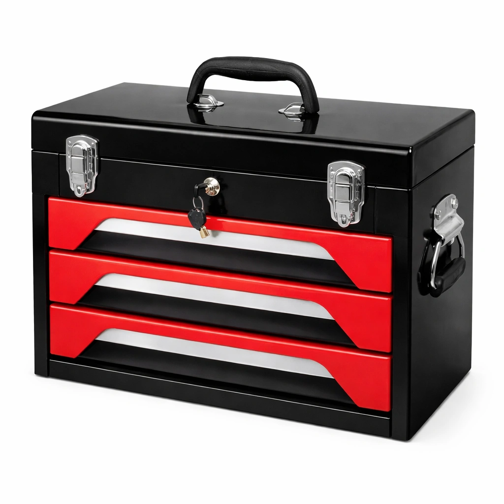 Características: Incluye llave para cierre seguro, manija ergonómica, cajones de deslizamiento suave. Capacidad para herramientas manuales estándar.